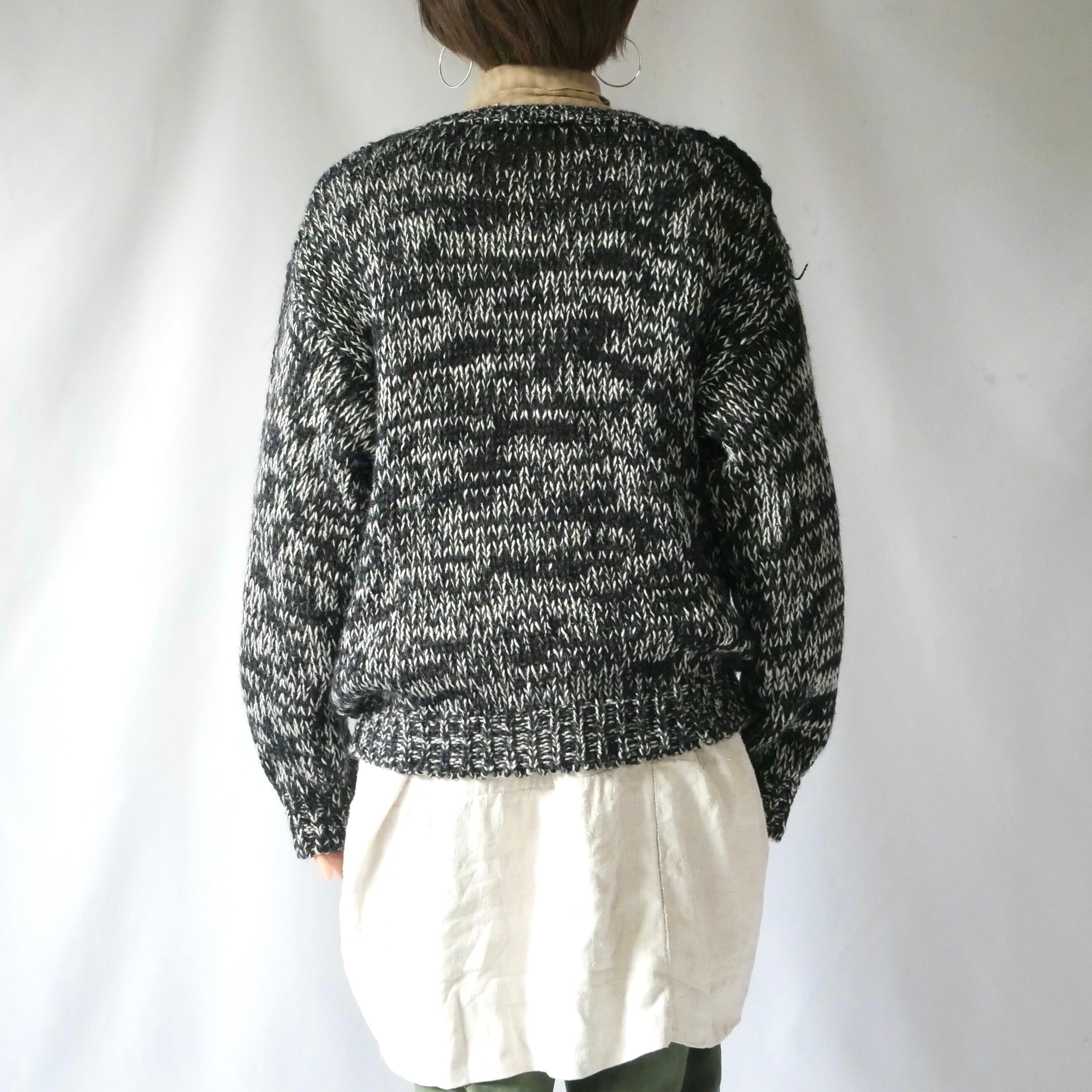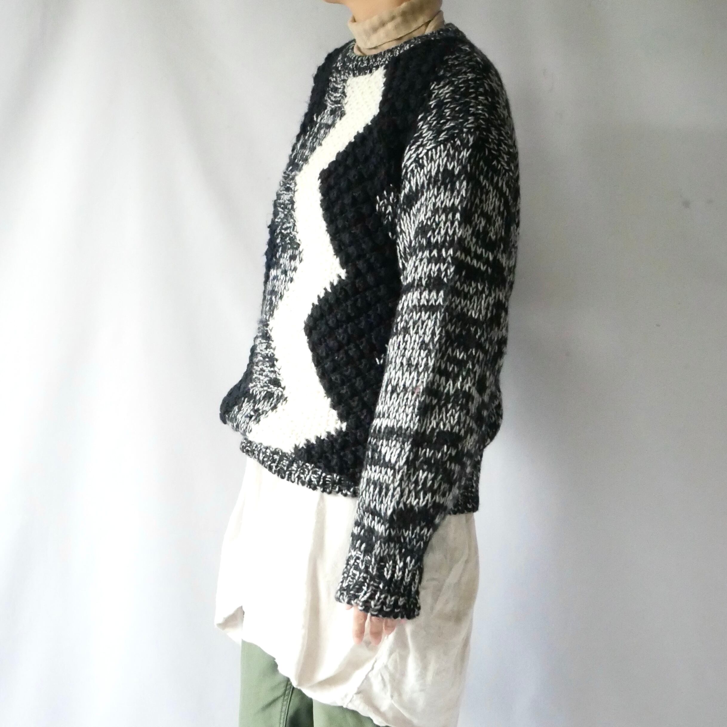 80s vintage zigzag black white acrylic knit 80年代 ヴィンテージ モノトーン ジグザグ模様 アクリルニット | &Dorothy used&vintage 古着屋