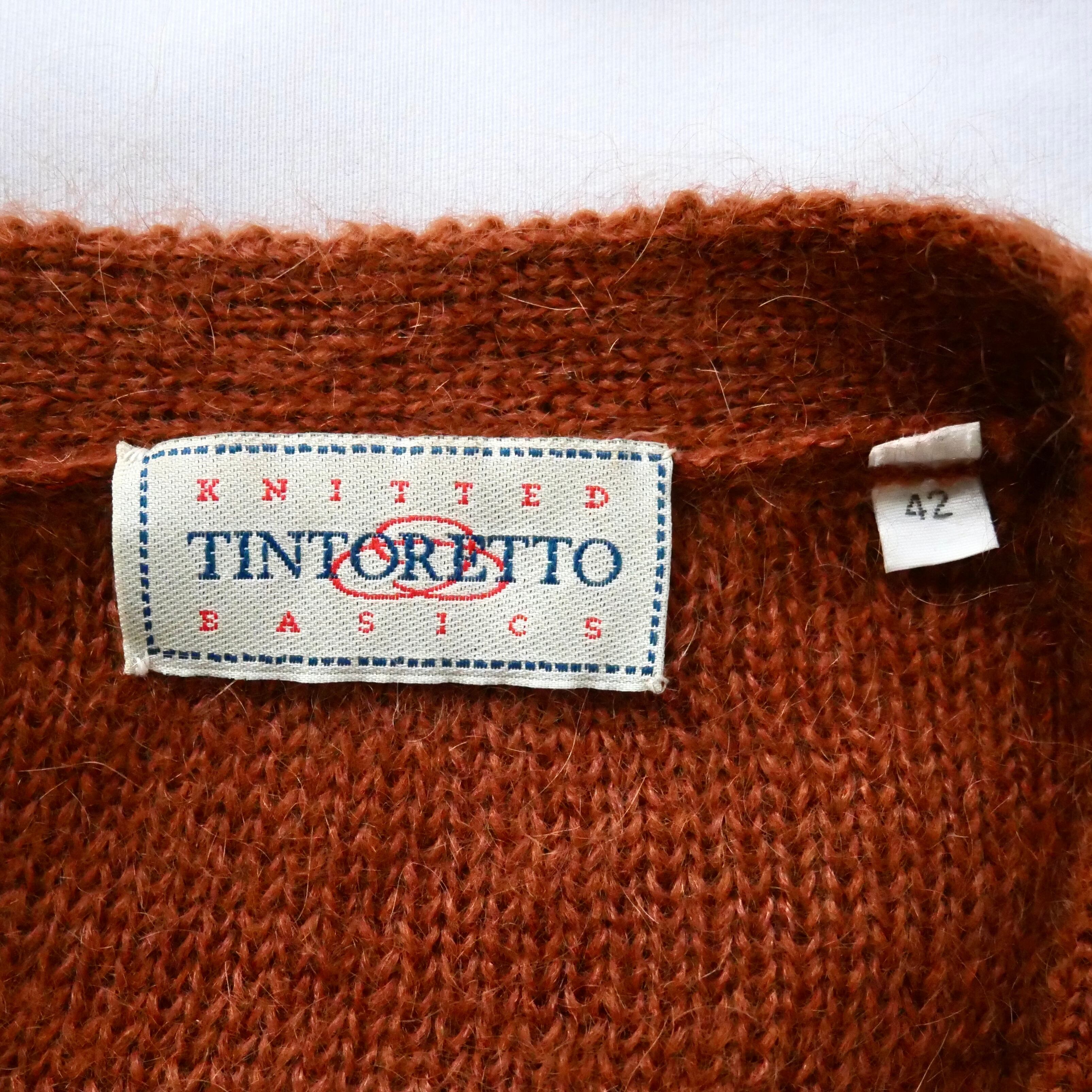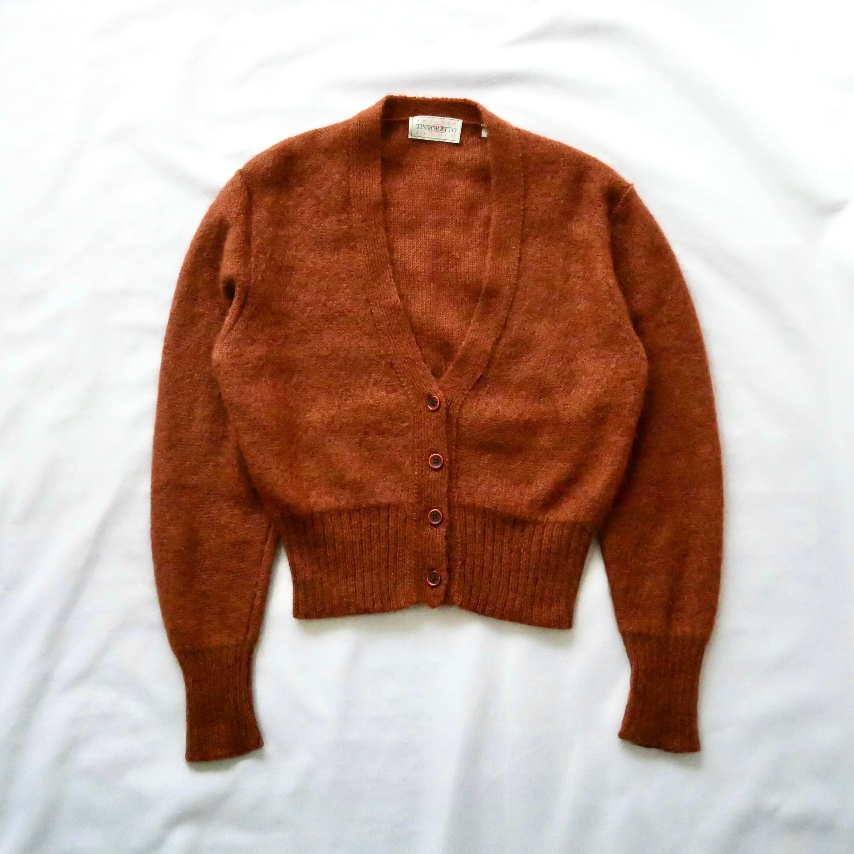 赤みがかかったブラウンが可愛いユーロヴィンテージモヘアニットカーディガンです。
