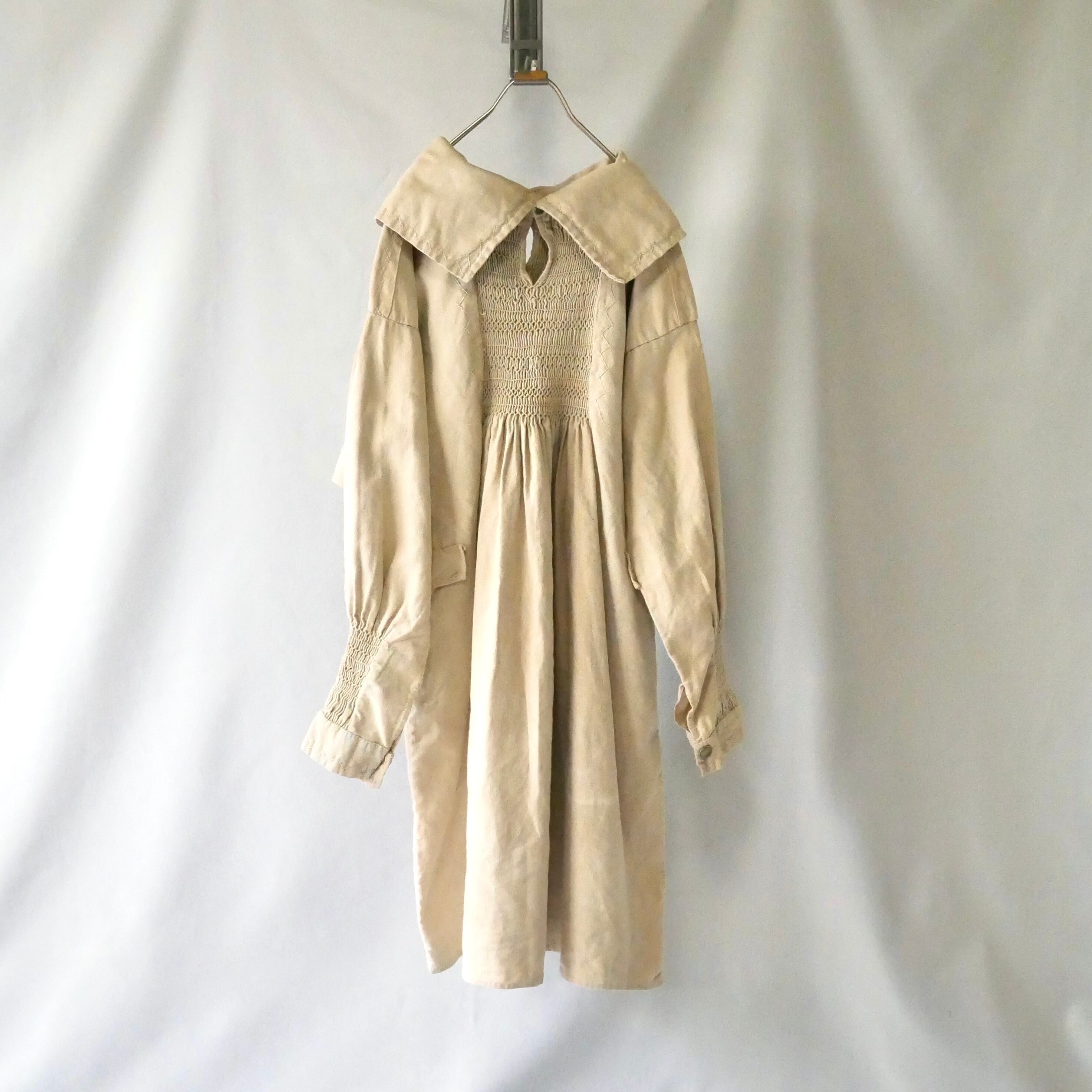 1900年代頃の物と思われるイギリス製アンティークスモッキング刺繍ドレスです。
