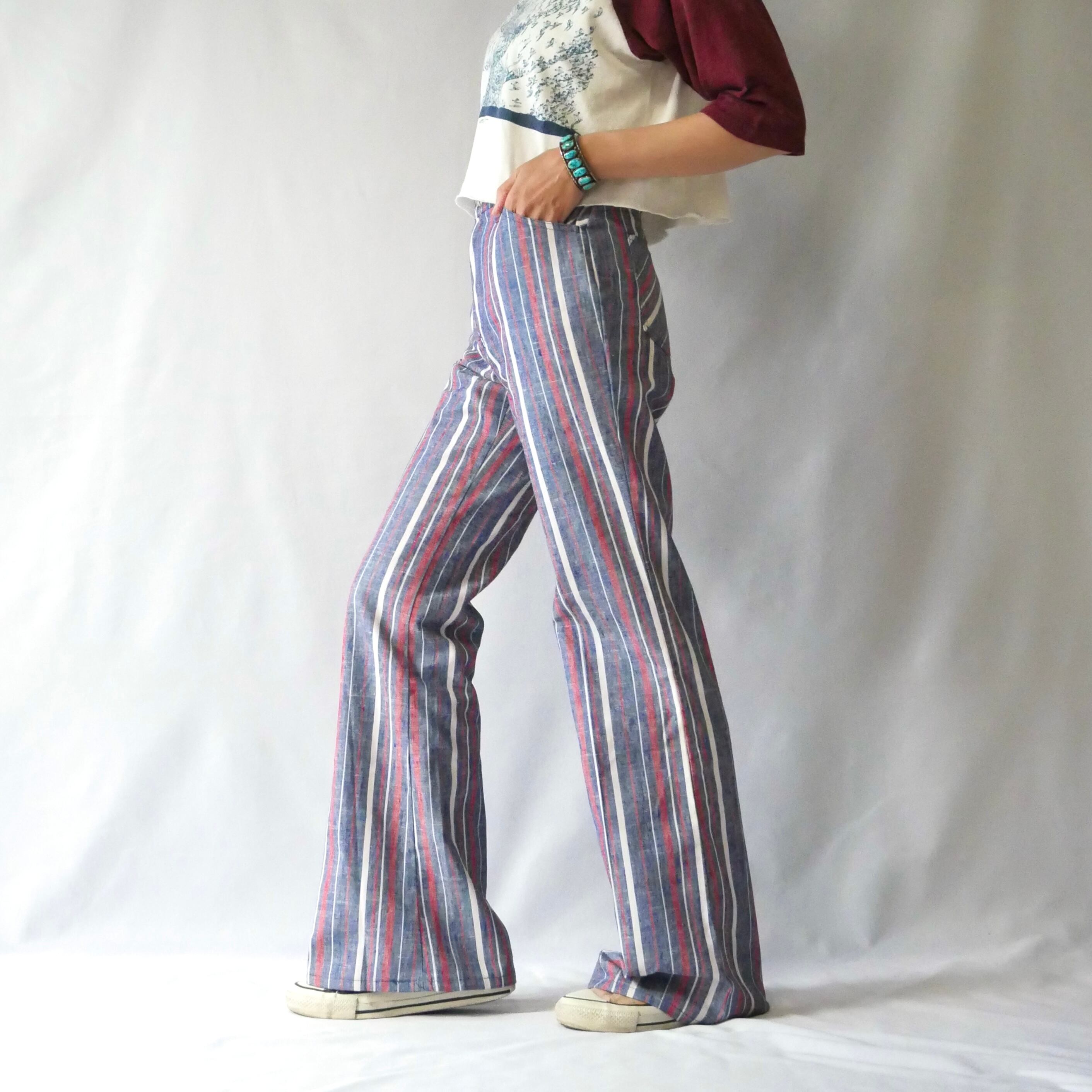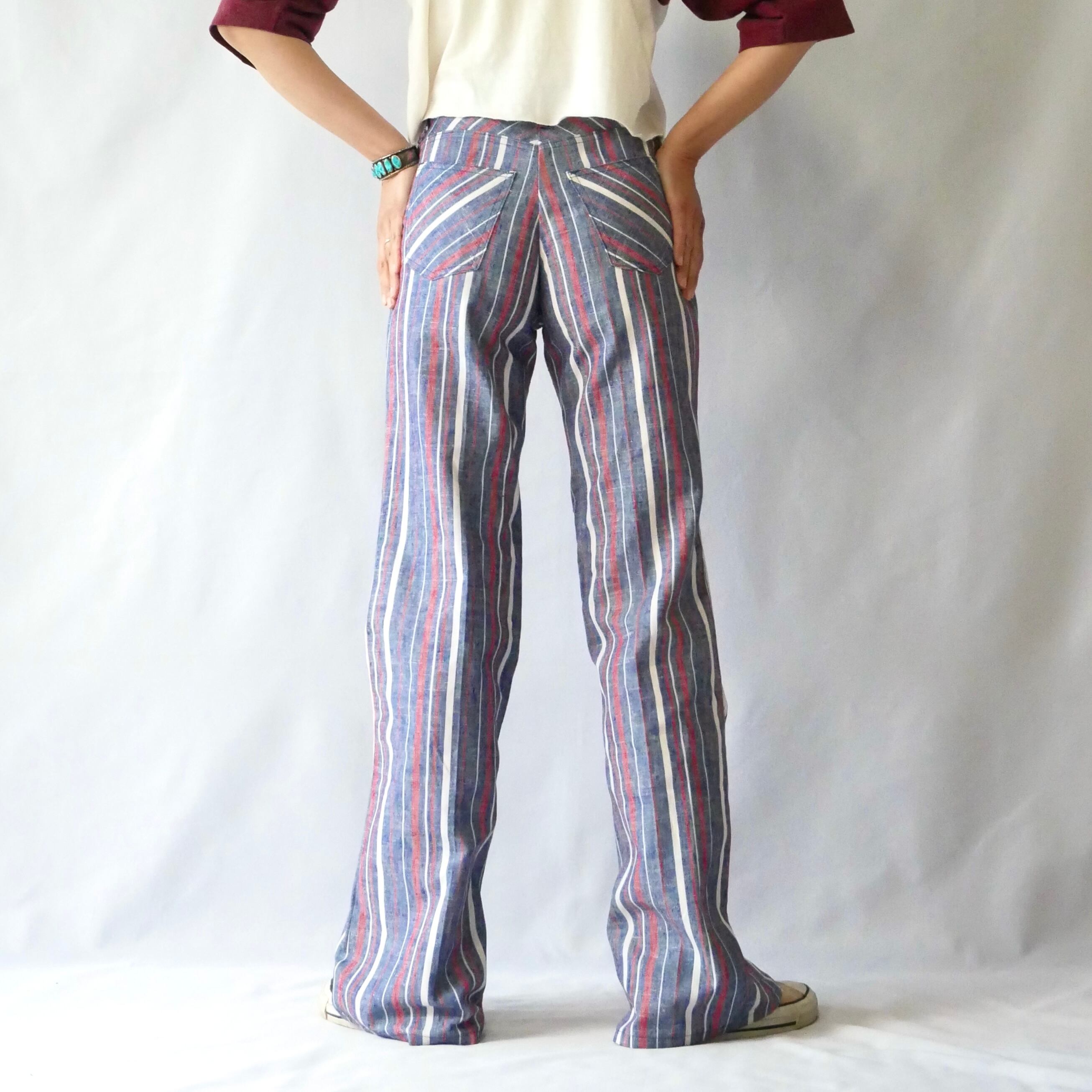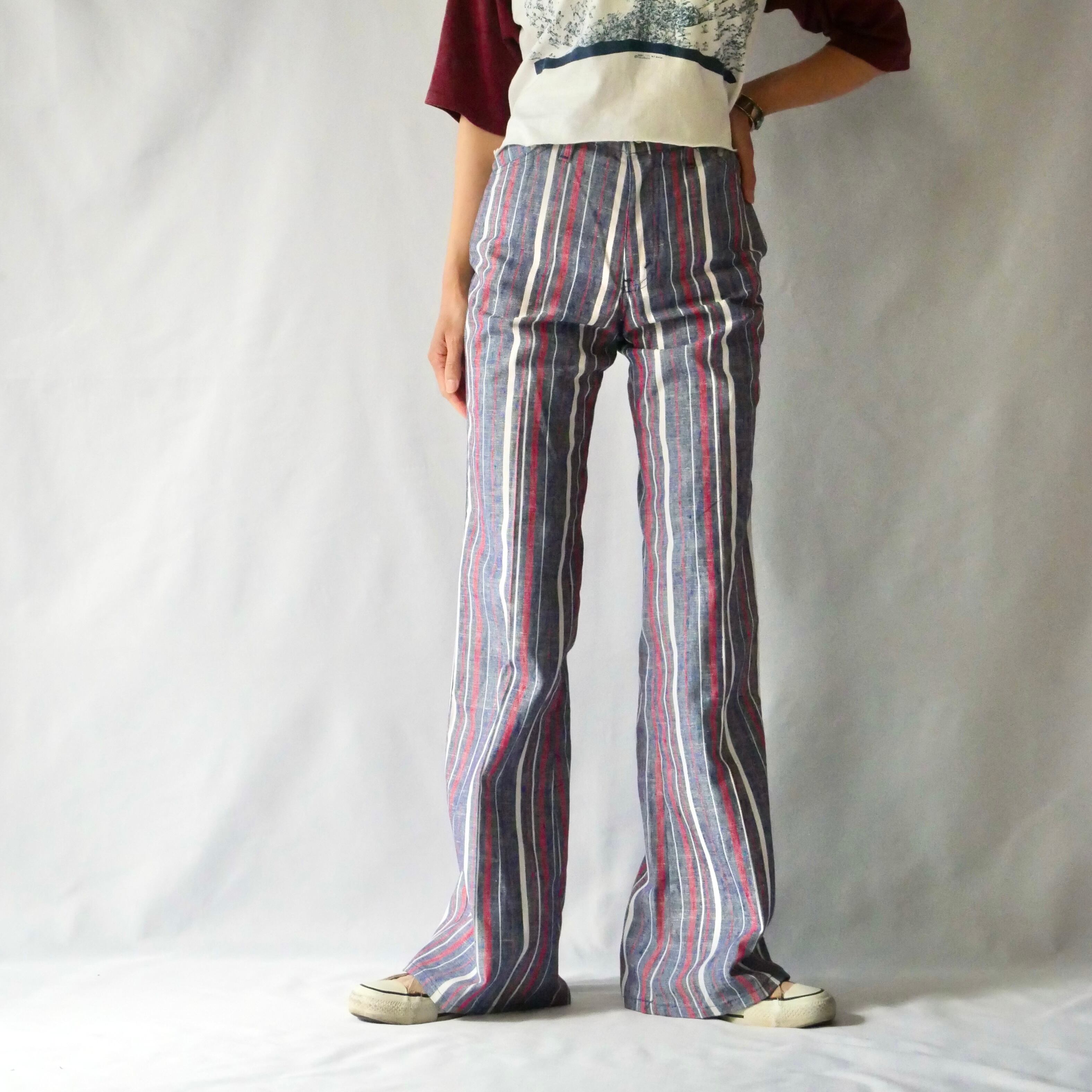 70s vintage dead stock stripe flare pant 70年代 フラッシャー付き ヴィンテージ マルチストライプ フレアパンツ | &Dorothy used&vintage 古着屋